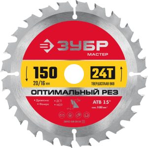 ЗУБР Оптимальный рез, 150 x 20/16 мм, 24Т, пильный диск по дереву (36912-150-20-24)