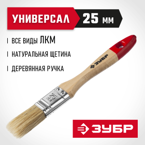 ЗУБР УНИВЕРСАЛ, 25 мм, 1″, светлая натуральная щетина, деревянная ручка, все виды ЛКМ, плоская кисть (01005-025)