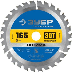ЗУБР Оптима, 165 x 20 мм, 30T, пильный диск по дереву, Профессионал (36903-165-20-30)