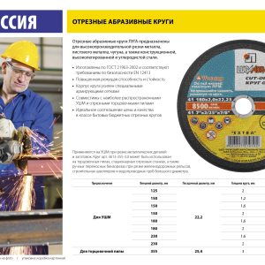 ЛУГА 125 x 1.6 x 22.2 мм, для УШМ, круг отрезной по металлу (3612-125-1.6)