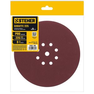 STEHER GIRAFFE 225 мм, Р80, шлифовальный круг на липучке, 9 отв., 5 шт. (35681-080)