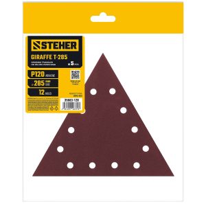 STEHER GIRAFFE T-285 мм, Р120, шлифовальный треугольник на липучке, 12 отв., 5 шт. (35683-120)