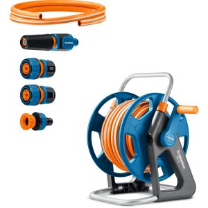 GRINDA HS-25, шланг 25 м x 1/2″, поливочный набор 4 предмета, возможность крепить к стене, катушка со шлангом в комплекте (8-428441)