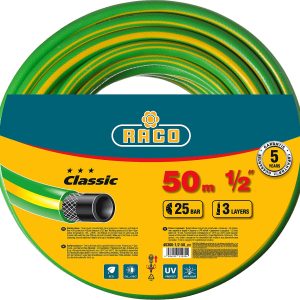 GRINDA Classic, 1/2″, 50 м, 25 атм, трёхслойный, армированный, сетчатое армирование полиамидной нитью, поливочный шланг (8-429001-1/2-50)