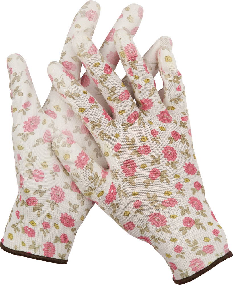 GRINDA S, бело-розовые, прозрачное PU покрытие, 13 класс вязки, садовые перчатки (11291-S)