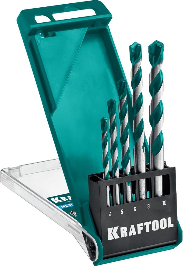KRAFTOOL Keramo, 5 шт: 4-5-6-8-10 мм набор сверл по керамограниту с твердосплавной пластиной (29175-H5)