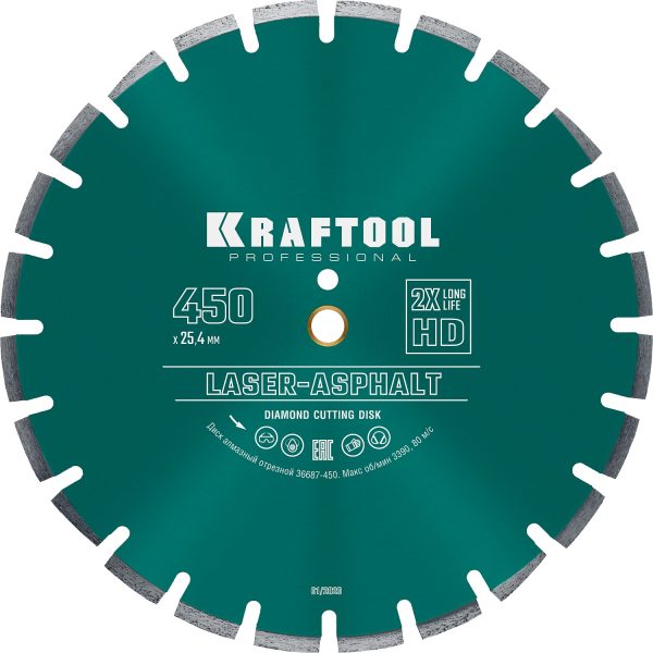 KRAFTOOL LASER-ASPHALT 450 мм (25.4/20 мм, 10х4.0 мм), алмазный диск (36687-450)