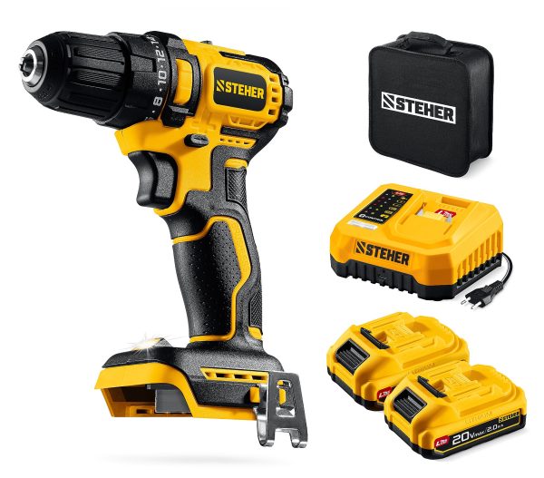 STEHER 20 В, 45 Н·м, 2 АКБ LMS (2 А·ч), бесщеточная дрель-шуруповерт, сумка (CB-45-22)