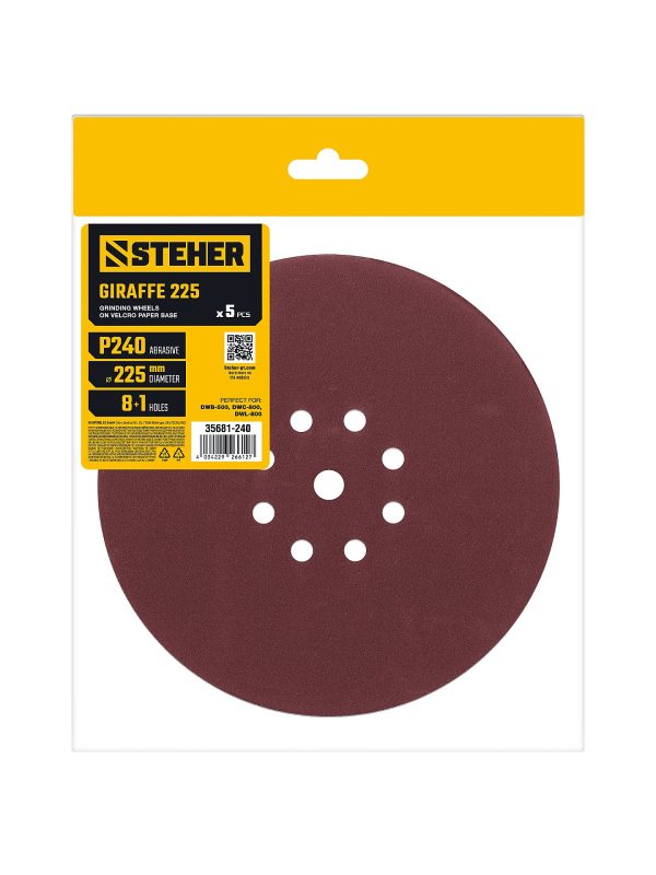 STEHER GIRAFFE 225 мм, Р240, шлифовальный круг на липучке, 9 отв., 5 шт. (35681-240)