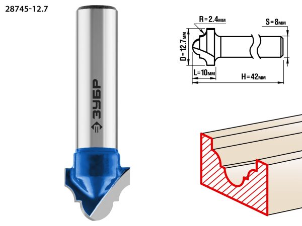 ЗУБР 12.7 x 10 мм, радиус 2.4 мм, фреза пазовая фасонная №6, Профессионал (28745-12.7)