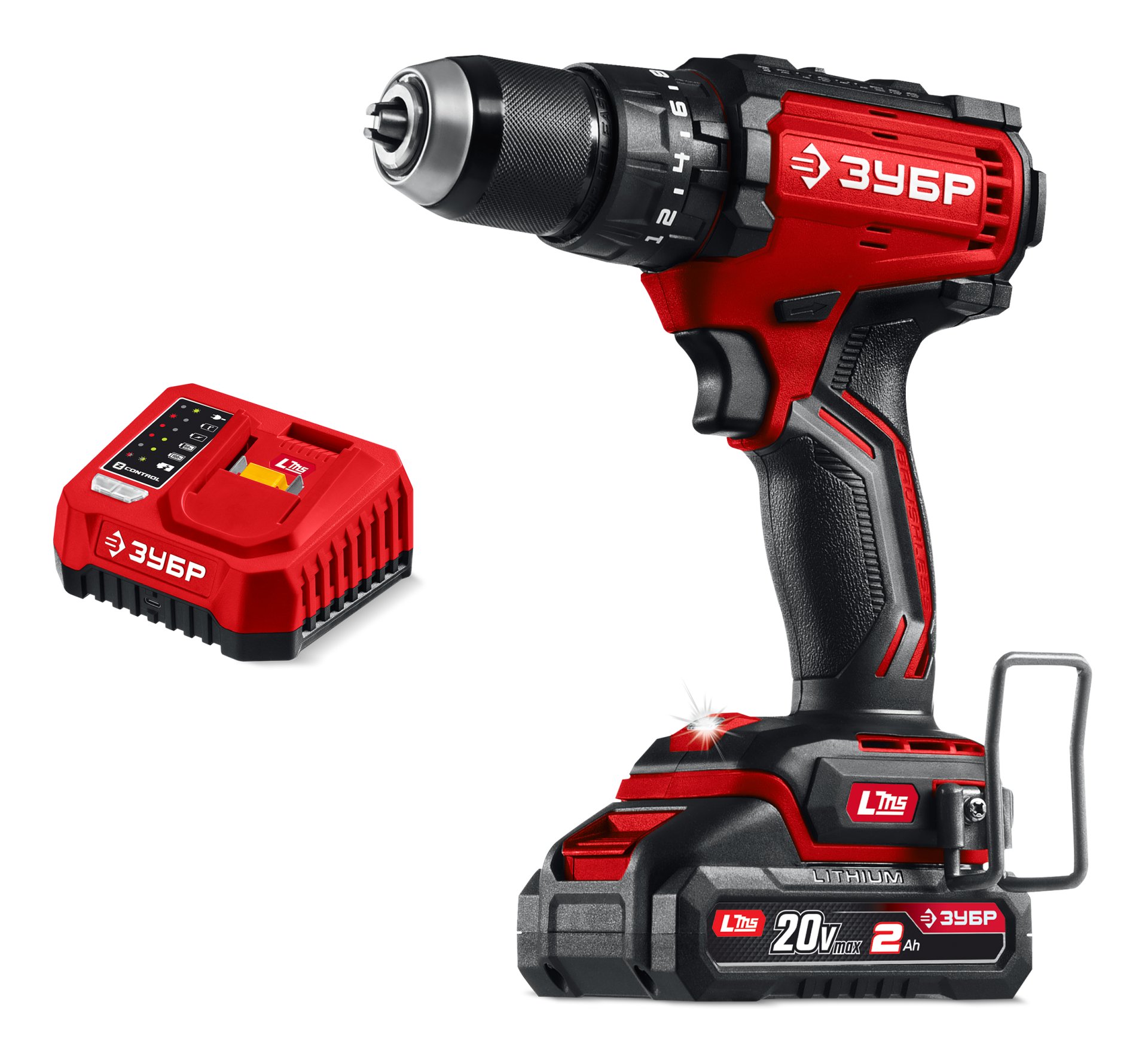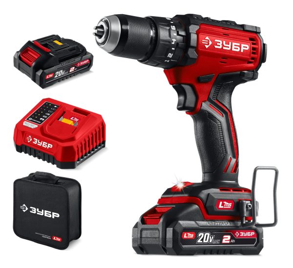ЗУБР 20 В, 65 Н·м, 2 АКБ LMS (2 А·ч), бесщеточная ударная дрель-шуруповерт, сумка (ДБУ-65-22)