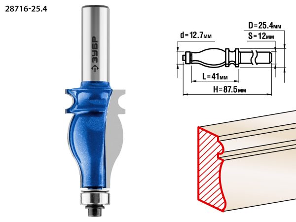 ЗУБР 25.4 x 41 мм, хвостовик 12 мм, фреза кромочная фигурная №5, Профессионал (28716-25.4)