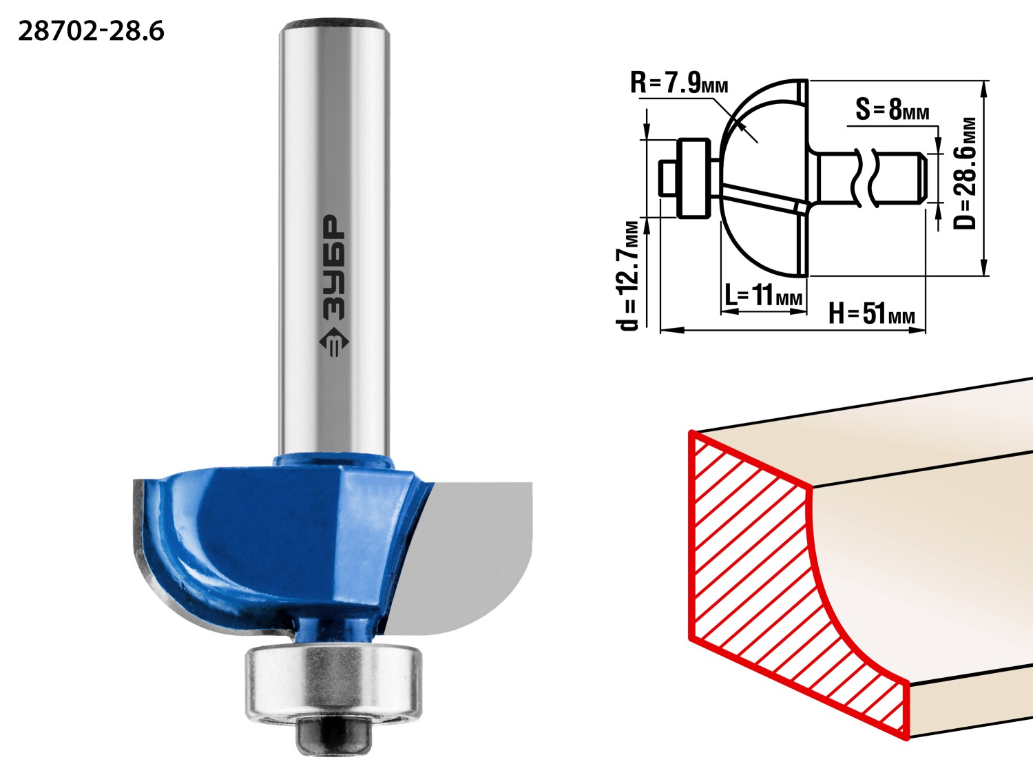 ЗУБР 31.8 x 14 мм, радиус 9.5 мм, фреза кромочная калевочная №2, Профессионал (28702-31.8)