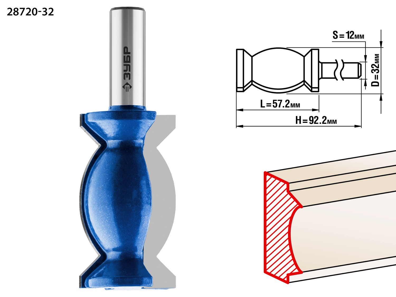 ЗУБР 32 x 57 мм, фреза кромочная калевочная №10, Профессионал (28721-32)