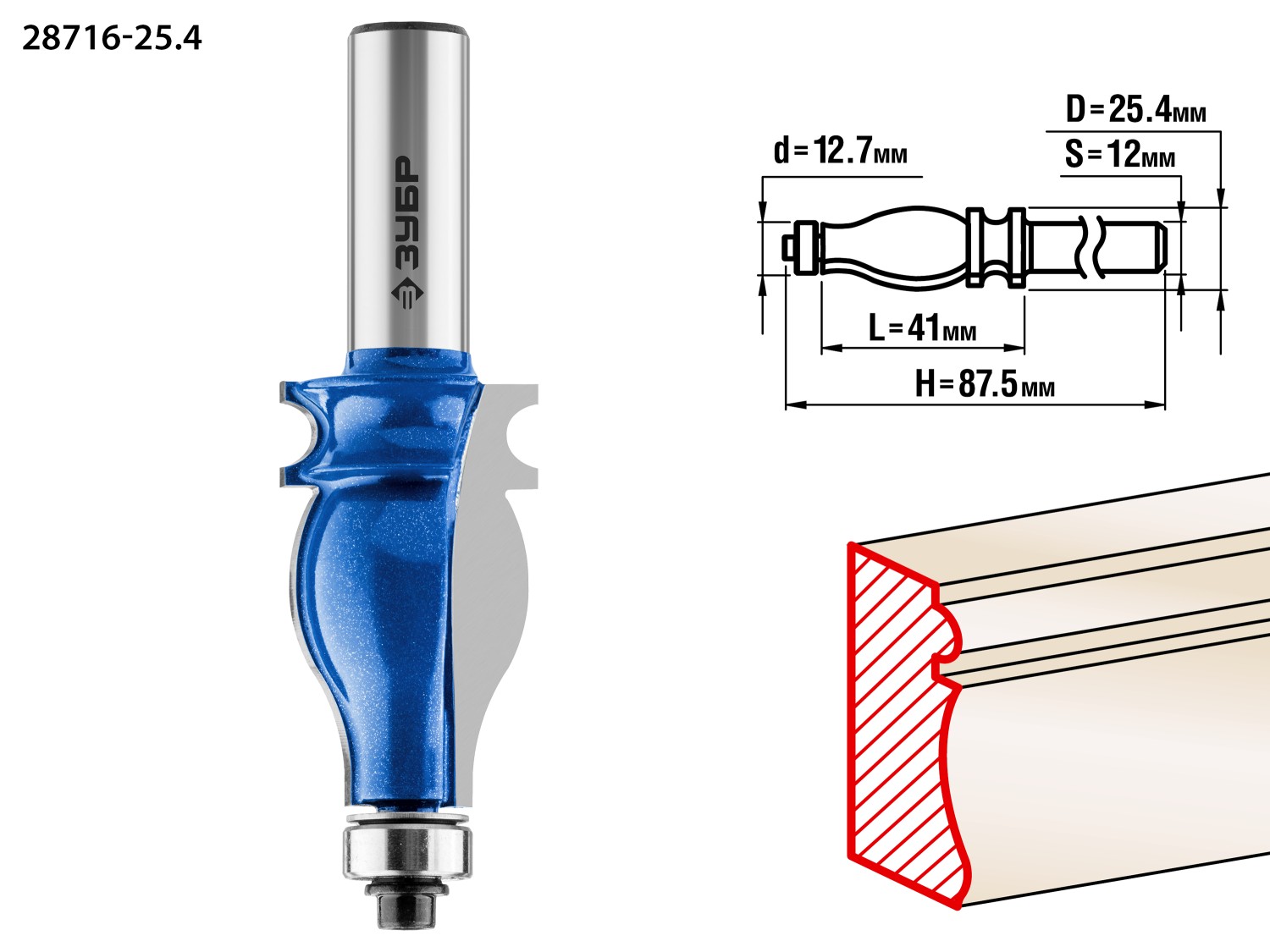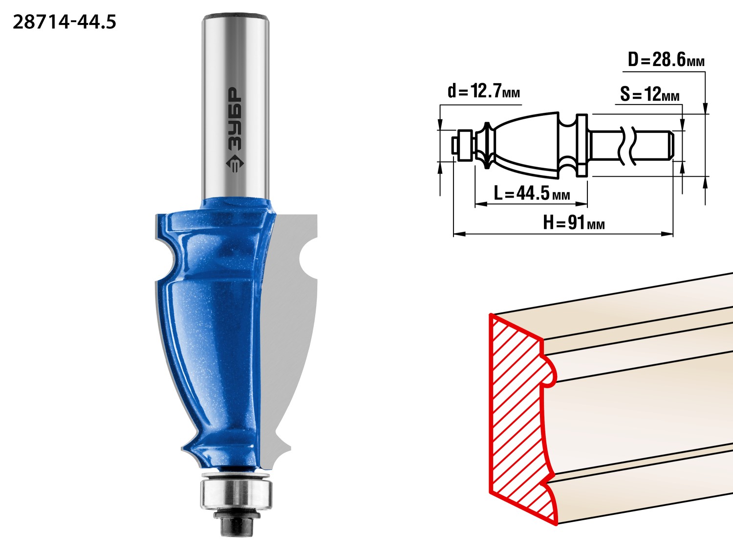 ЗУБР 44.5 x 28 мм, хвостовик 12 мм, фреза кромочная фигурная №4, Профессионал (28715-44.5)