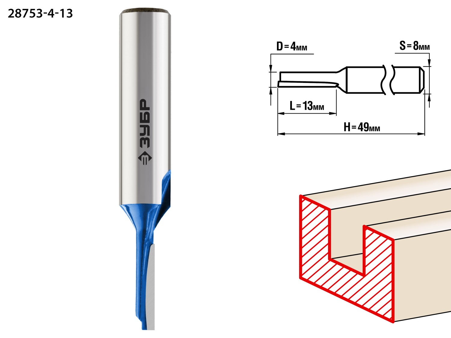 ЗУБР 6 x 16 мм, хвостовик 8 мм, фреза пазовая прямая, Профессионал (28753-6-16)