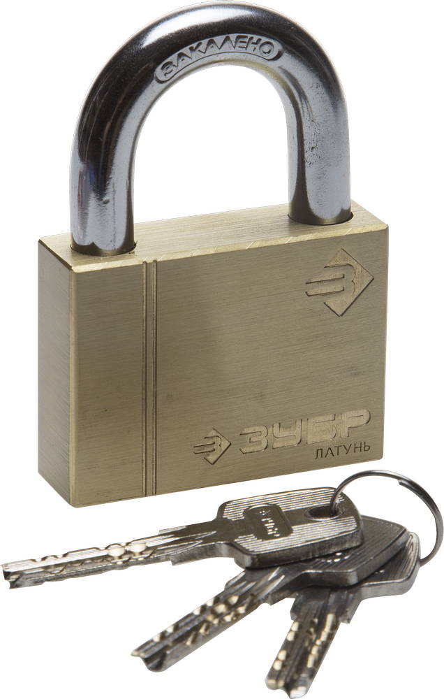 ЗУБР 60 мм, удлиненная дужка, латунный корпус, навесной замок (37299-60-1)