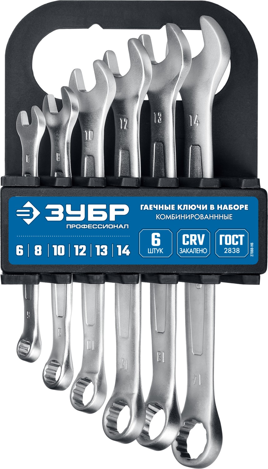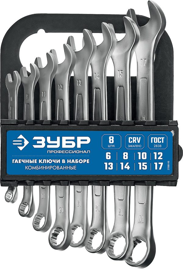 ЗУБР 8 шт, 6 – 17 мм, набор комбинированных гаечных ключей, Профессионал (27088-H8)