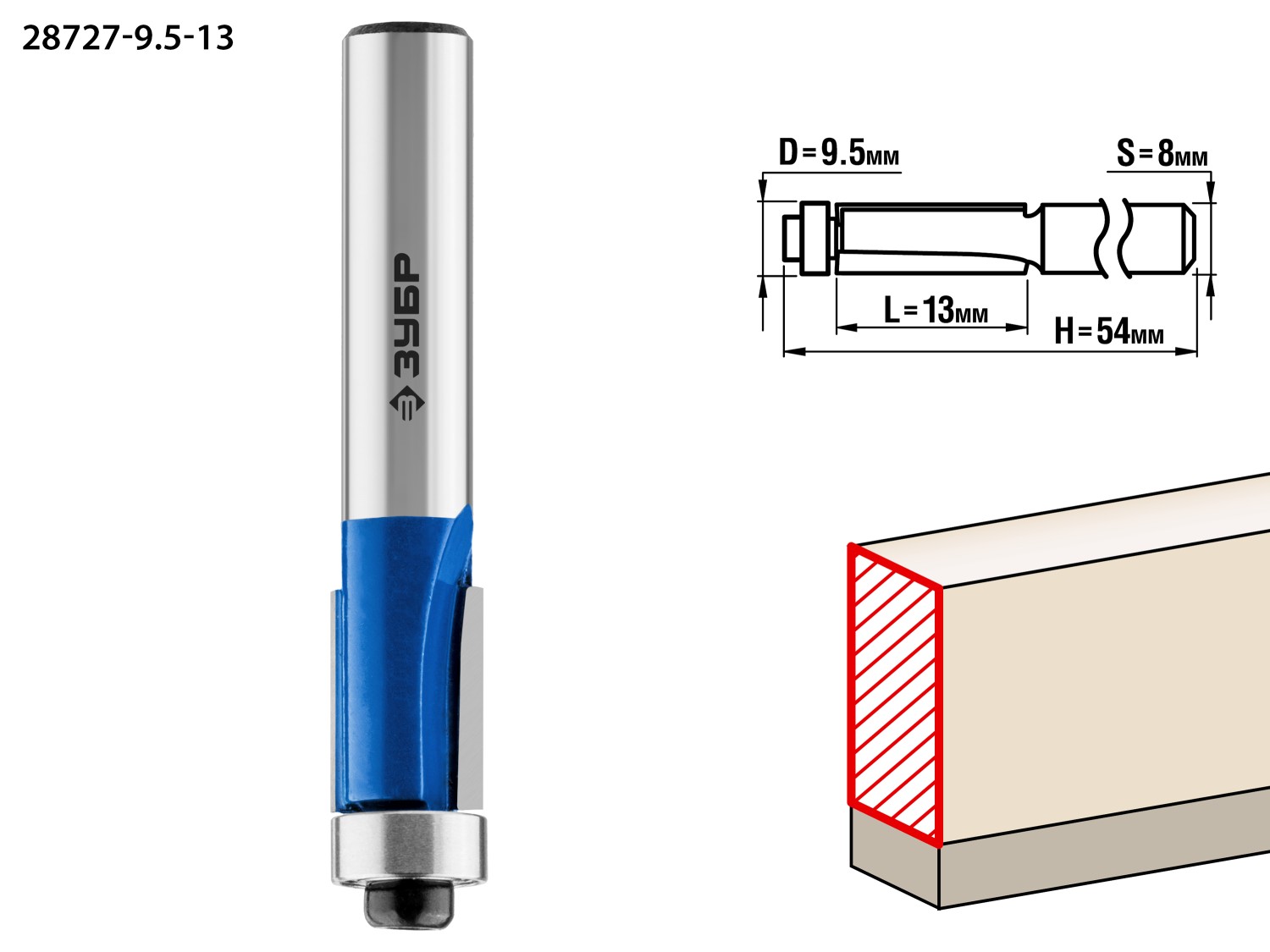 ЗУБР 9.5 x 25 мм, хвостовик 8 мм, фреза кромочная с нижним подшипником, Профессионал (28727-9.5-25)
