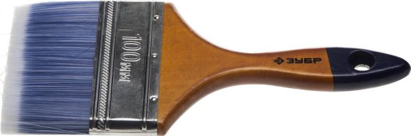 ЗУБР АКВА, 100 мм, 4″, светлая искусственная щетина, деревянная ручка, для воднодисперсионных и акриловых ЛКМ, плоская кисть (4-01007-100)