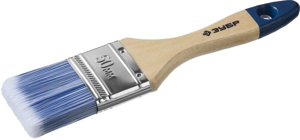 ЗУБР АКВА, 50 мм, 2″, светлая искусственная щетина, деревянная ручка, для воднодисперсионных и акриловых ЛКМ, плоская кисть (4-01007-050)