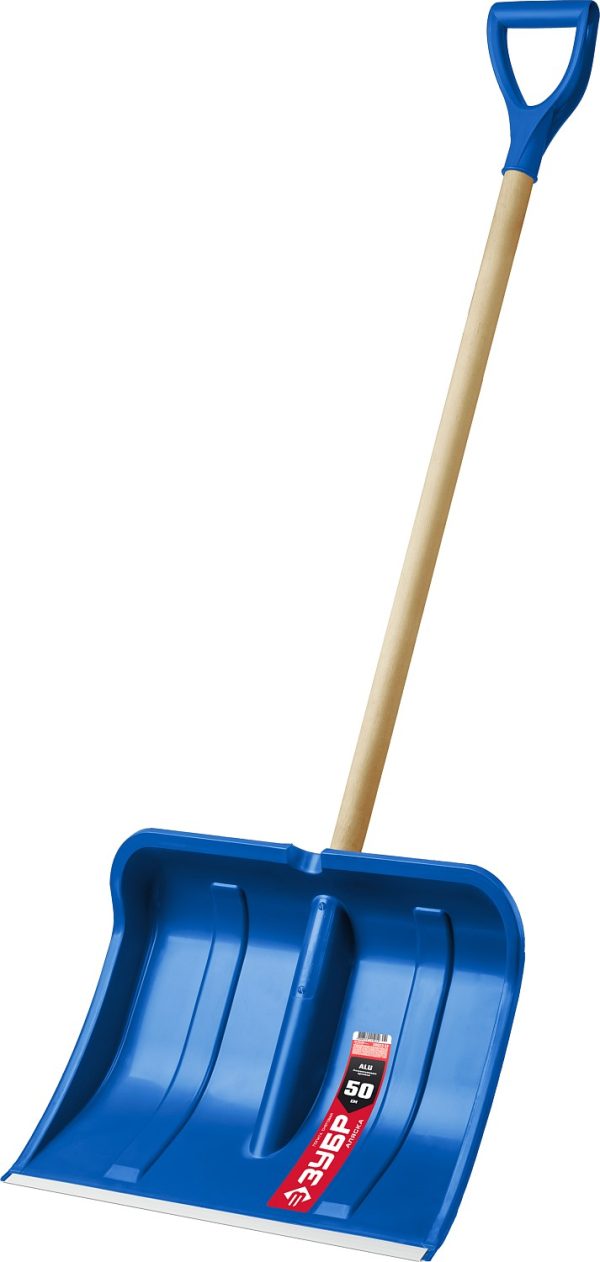 ЗУБР АЛЯСКА, 490 мм, пластиковая, с алюминиевой планкой, деревянный черенок, V-ручка, снеговая лопата, Профессионал (39923)