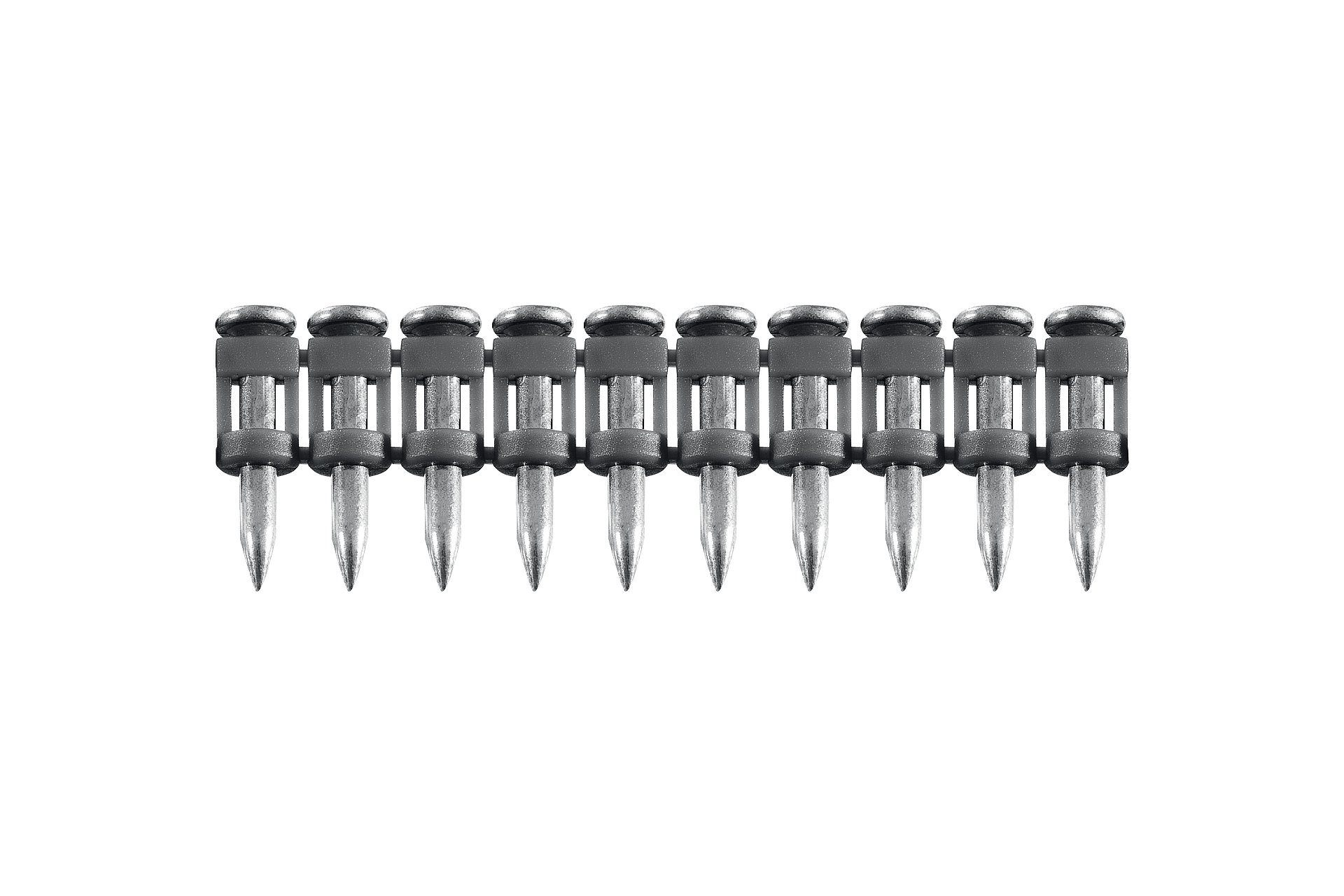 Гвозди по бетону соединены в кассету и забиваются при помощи газового или пневматического монтажного пистолета. Необходимый размер гвоздя подбирается в зависимости от монтируемых материалов.