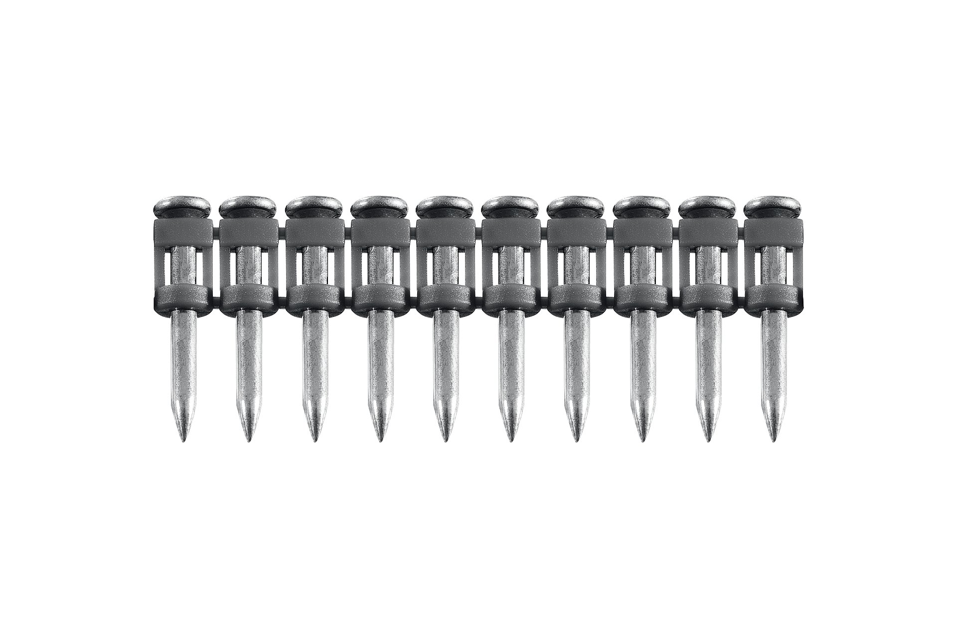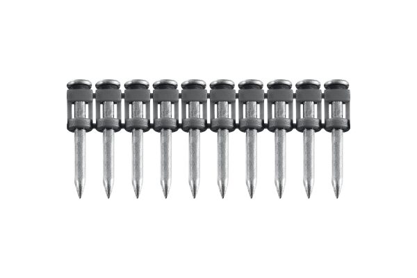 Гвозди по бетону соединены в кассету и забиваются при помощи газового или пневматического монтажного пистолета. Необходимый размер гвоздя подбирается в зависимости от монтируемых материалов.