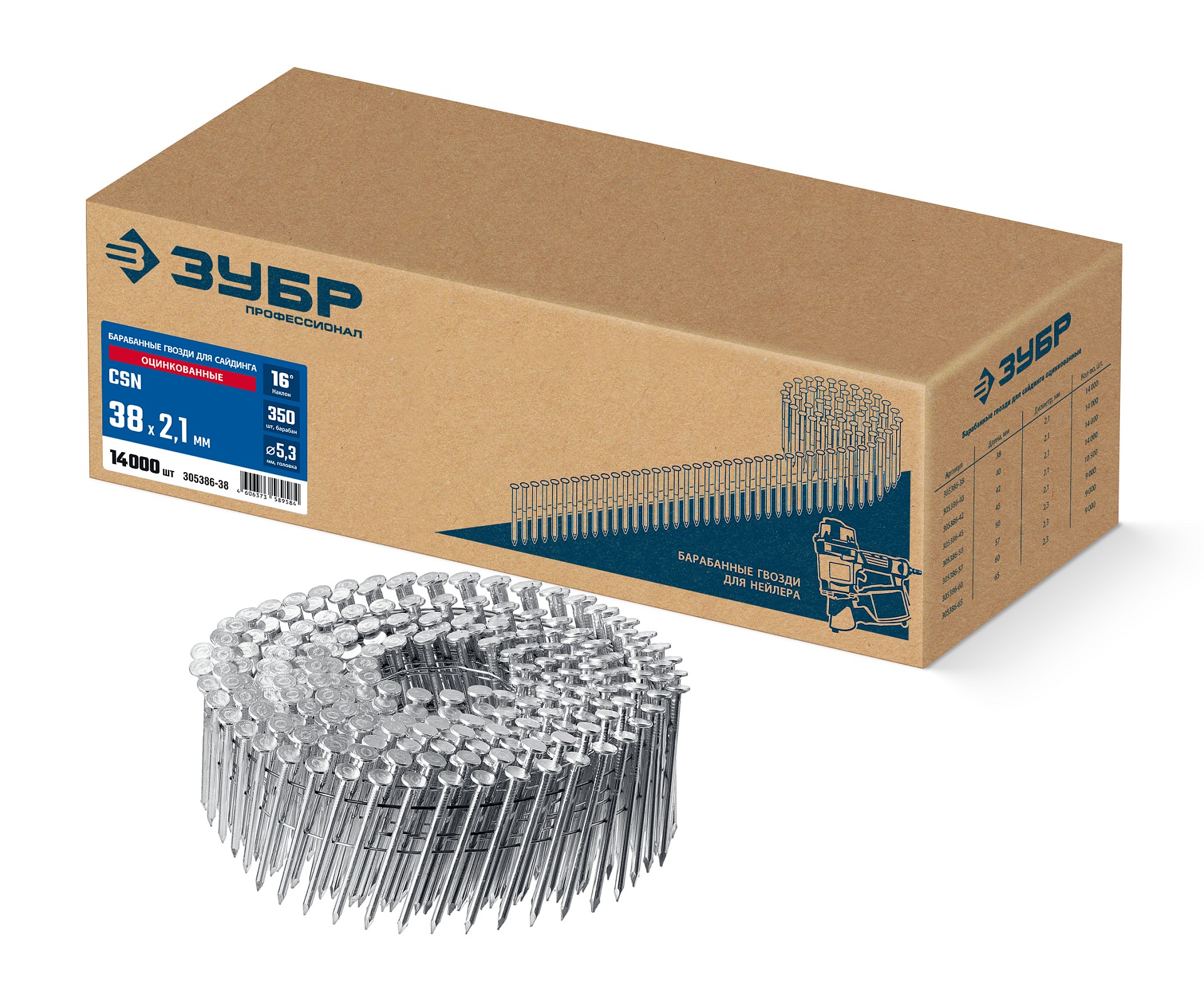 ЗУБР CNW 100 х 3.1 мм, барабанные гвозди рифленые, 2400 шт (305382-100)
