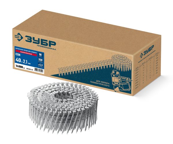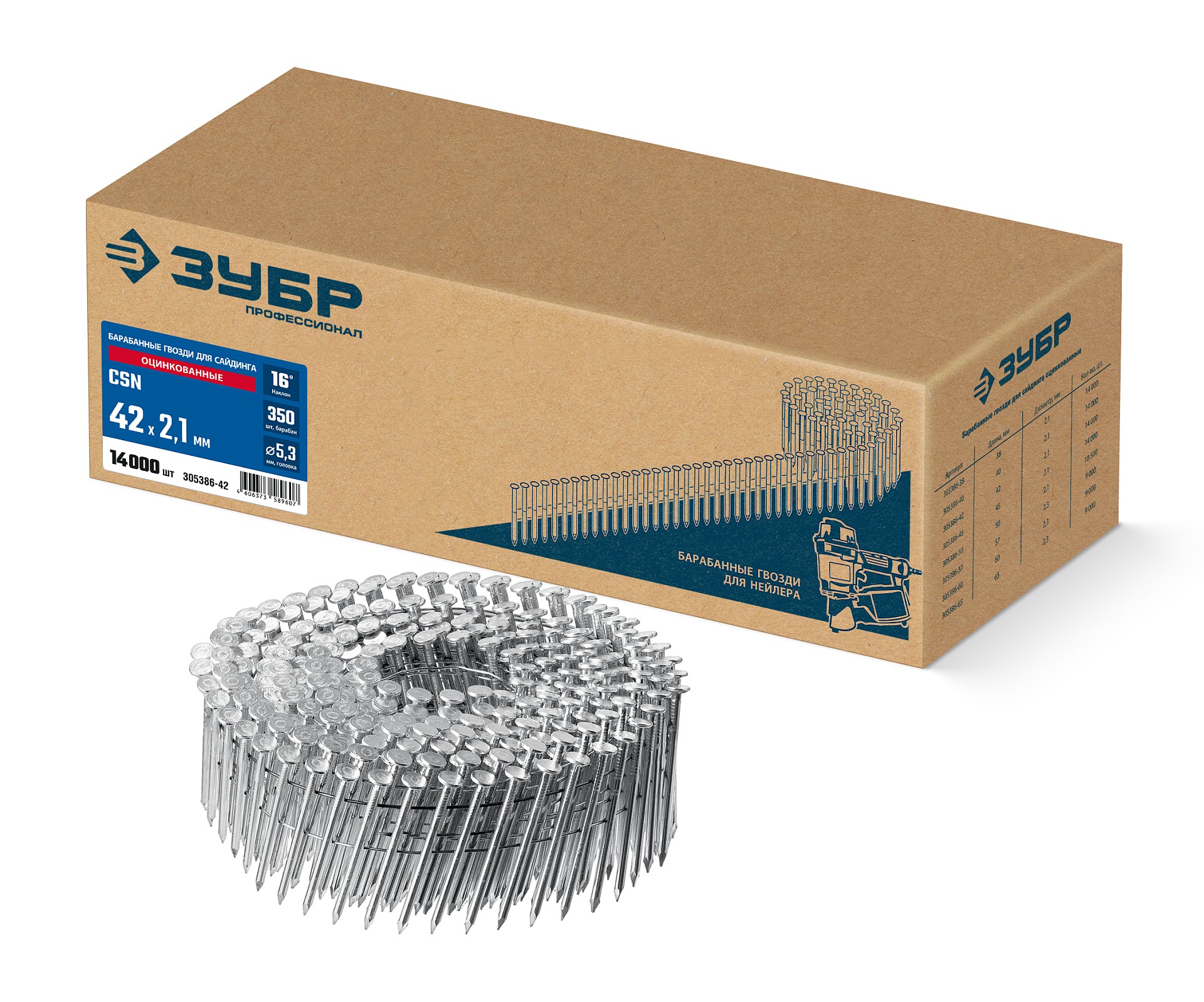 ЗУБР CSN 40 х 2.1 мм, барабанные гвозди для сайдинга оцинкованные, 14000 шт (305386-40)