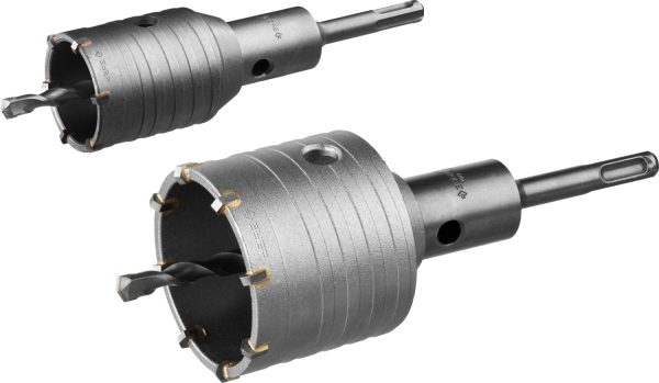 При прокладке коммуникаций в строящемся здании не обойтись без коронок по бетону. Они позволяют без труда получать отверстия среднего или большого диаметра в самых прочных материалах. Коронки имеют твердосплавные зубья из сплава ВК85, усовершенствованную систему крепления сверла на конус и резьбовое соединение с державкой М22.