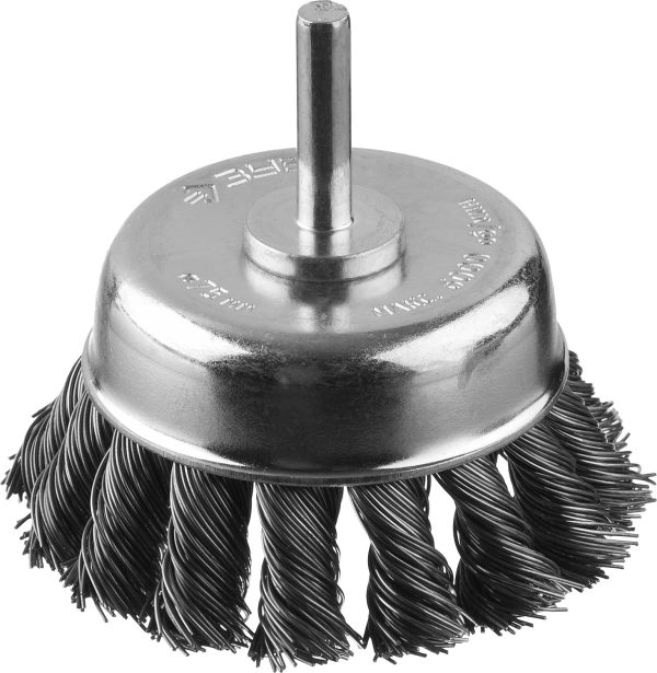 ЗУБР d 75 мм, жгутированная, стальная проволока 0.3 мм, чашечная щетка для дрели, Профессионал (35255-075)