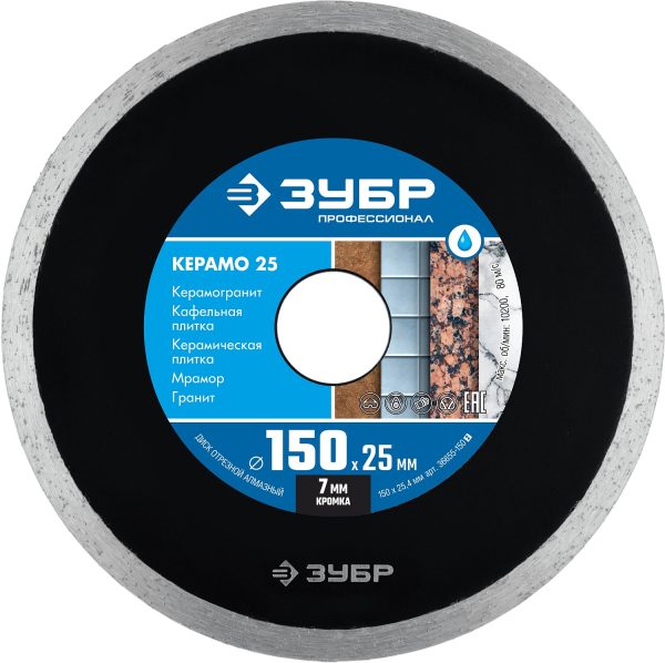 ЗУБР Керамо-25, d 150 мм, (25.4мм, 7 х 2.0 мм), сплошной алмазный диск, Профессионал (36655-150)