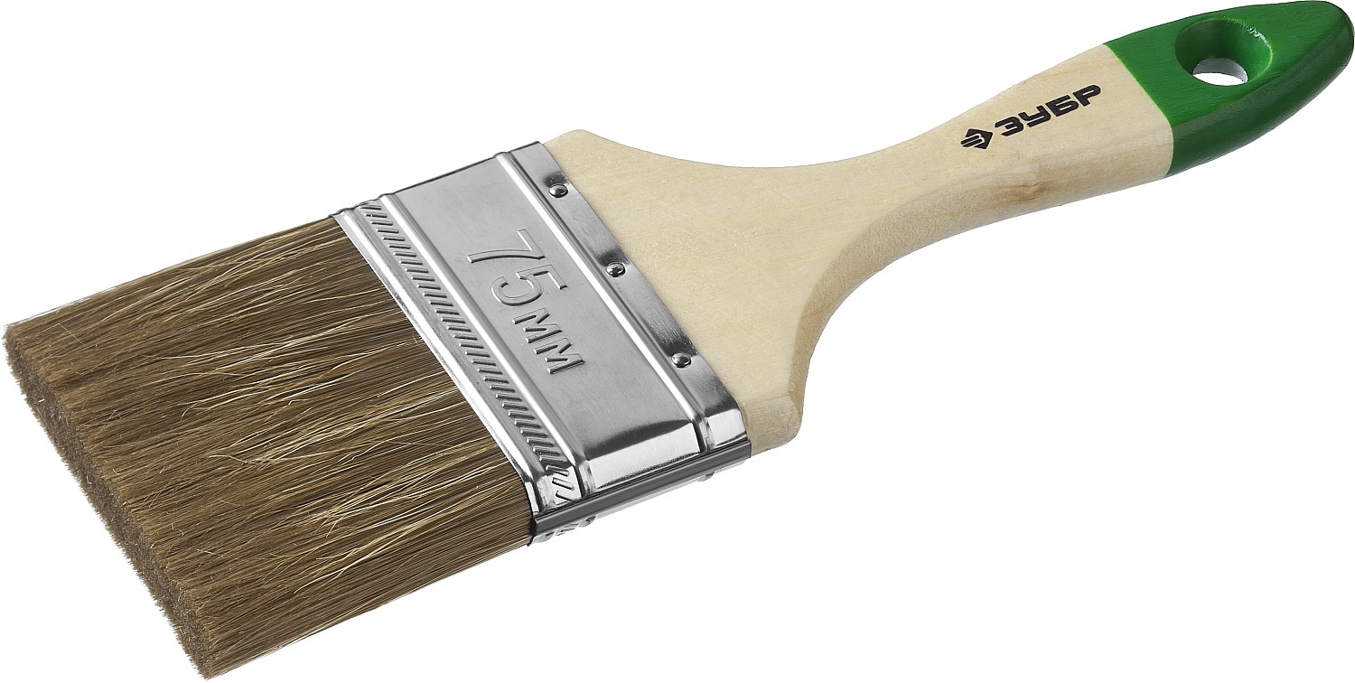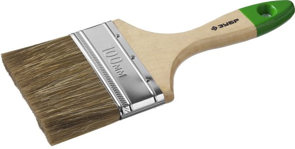 ЗУБР ЛАЗУРЬ, 100 мм, 4″, светлая смешанная щетина, деревянная ручка, плоская кисть (4-01009-100)