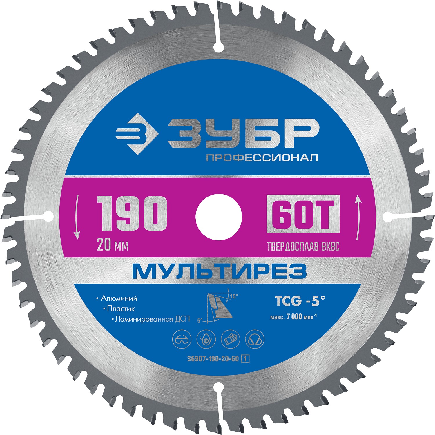 ЗУБР Мультирез, 190 x 30 мм, 60Т, пильный диск по алюминию, Профессионал (36907-190-30-60)