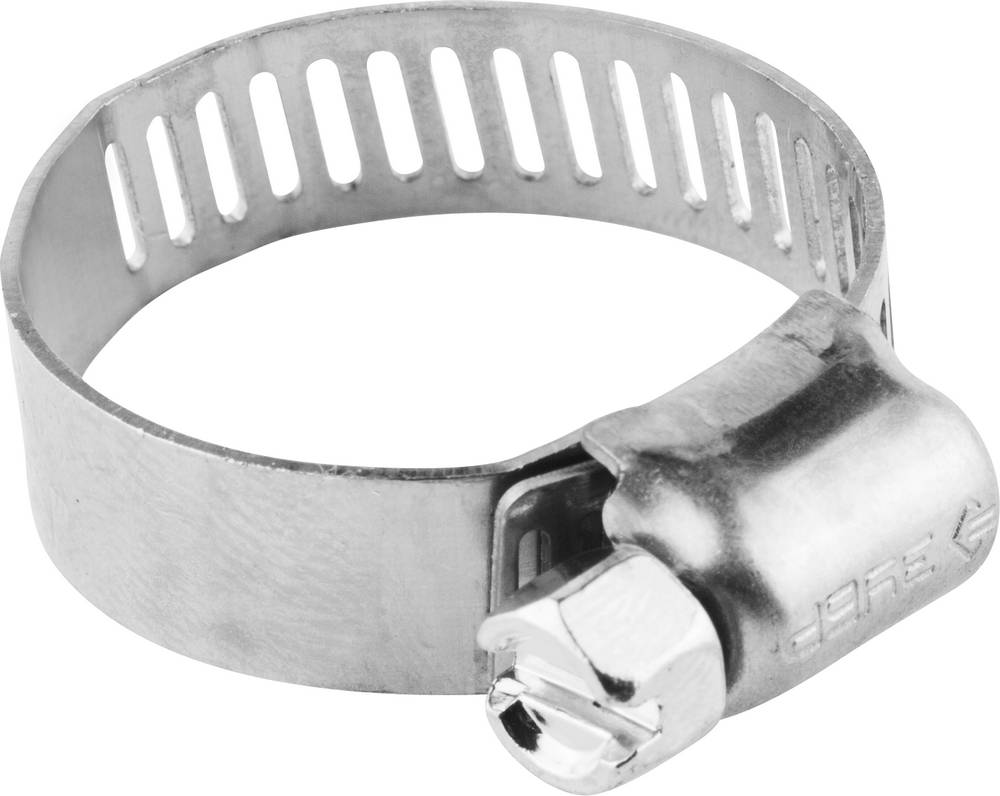 Червячный хомут состоит из штампованной нержавеющей ленты и винта с червячной резьбой. По всей длине ленты имеются просечки, расположенные на одинаковом расстоянии друг от друга. При вращении винта лента сжимается, благодаря чему создается надежное и герметичное соединение шлангов, различных труб, и т.д. Червячный винт снабжен шестигранной головкой под ключ 6 мм и шлицем SL, что позволяет использовать при монтаже гаечный ключ или шлицевую отвертку.