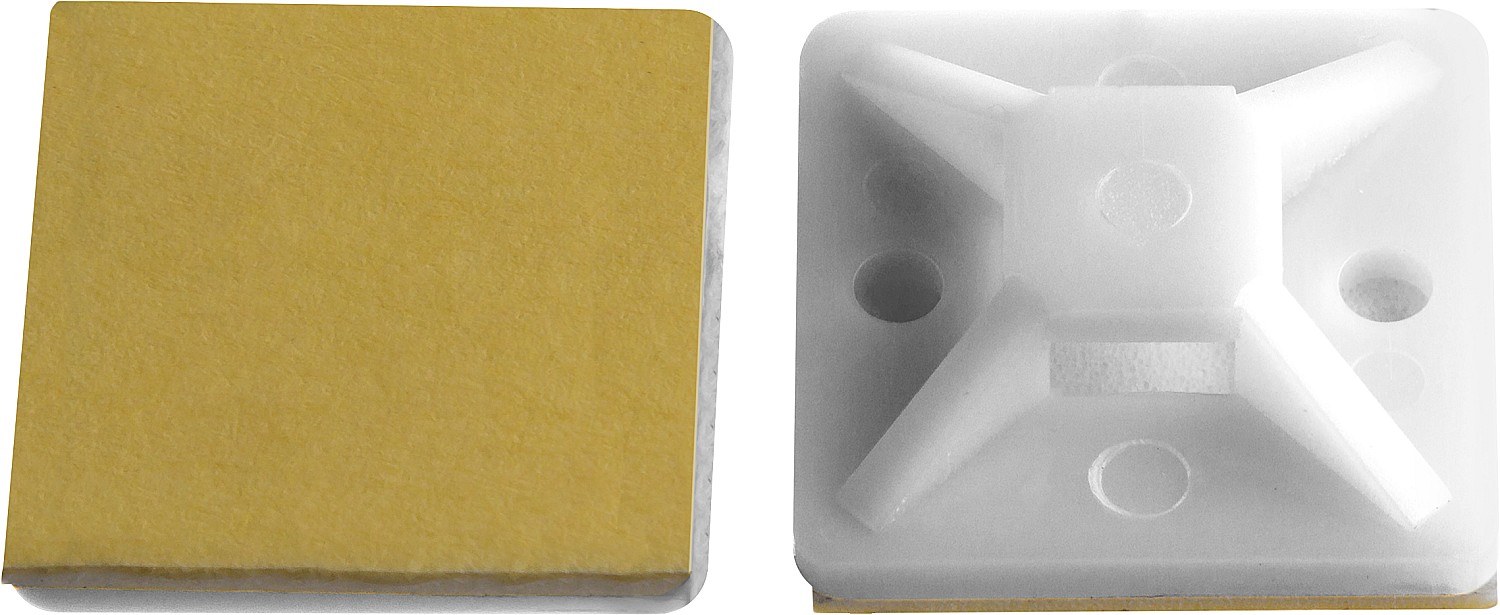 Для крепления кабельных стяжек к различным поверхностям при помощи самоклеящегося основания. Для обеспечения большей несущей способности или при использовании площадки снаружи зданий необходимо воспользоваться саморезом.