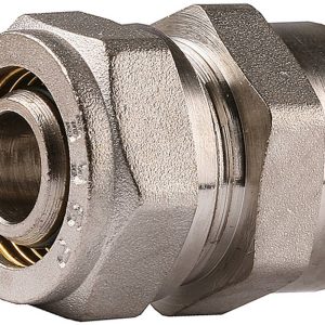 Для соединения двух участков трубопровода из металлопластиковых труб разного диаметра между собой через накдную гайку и штуцер