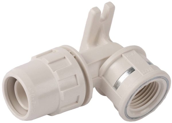 ЗУБР ШиреФит, штуцер с гайкой внутренняя резьба 16 мм – 1/2″, угловая муфта с креплением (51468-16-1/2)