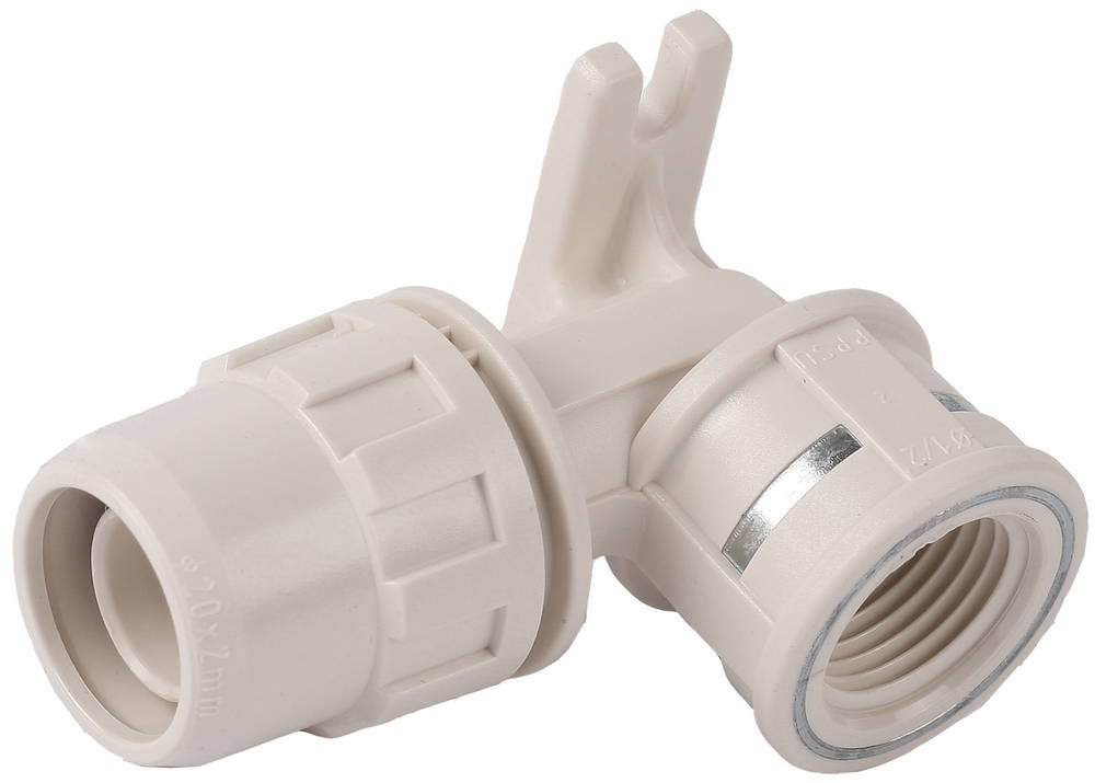Для подсоединения металлопластиковой трубы к металлической трубе с наружной резьбой, расположенными под углом 90˚ друг к другу