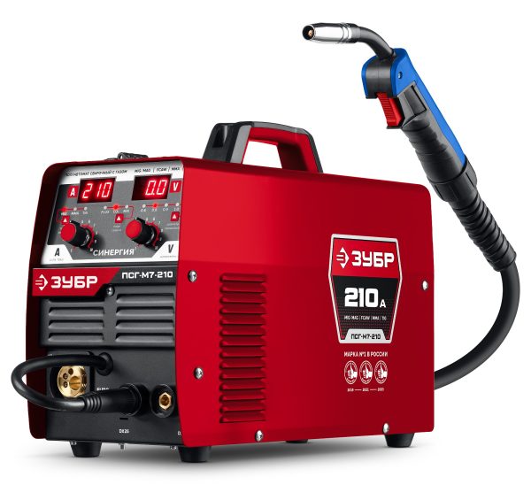 ЗУБР СИНЕРГИЯ, MIG / MAG, FCAW, MMA, TIG, 210 А, полуавтомат сварочный, с газом / без газа, горелка ПСГ-220 (ПСГ-М7-210)
