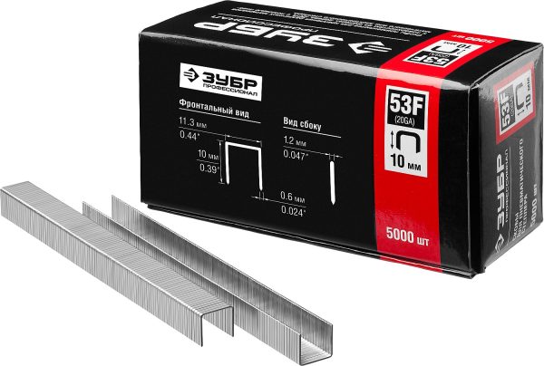 ЗУБР скобы тип 53F (D/056), 10 мм, калибр 23GA. 5000 шт. Профессионал (31950-10)