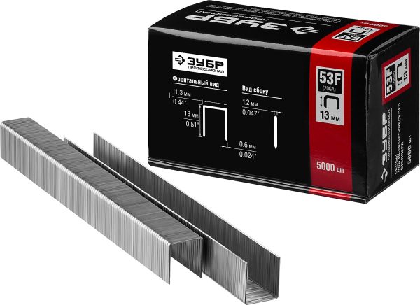 ЗУБР скобы тип 53F (D/056), 13 мм, калибр 23GA. 5000 шт. Профессионал (31950-13)