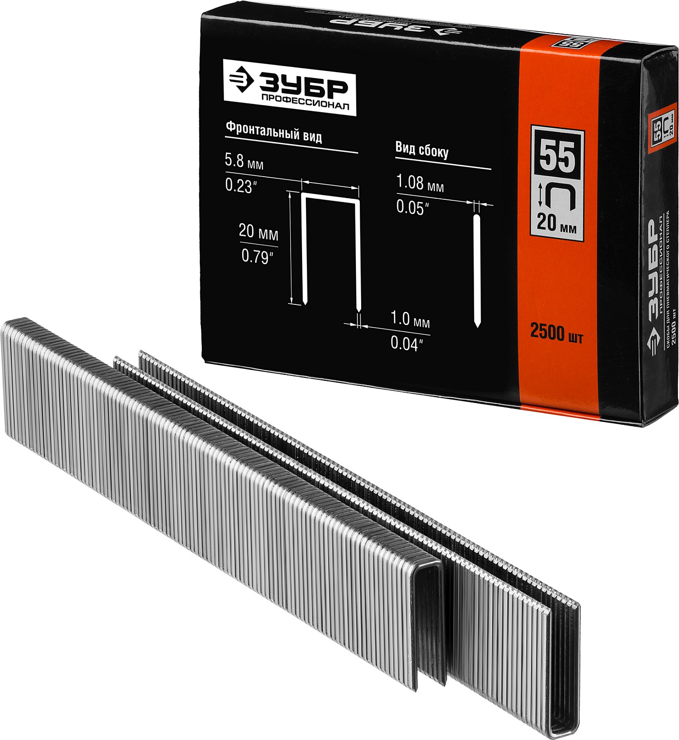 ЗУБР скобы тип 55 (90/C), 15 мм, калибр 18GA. 2500 шт. Профессионал (31855-15)