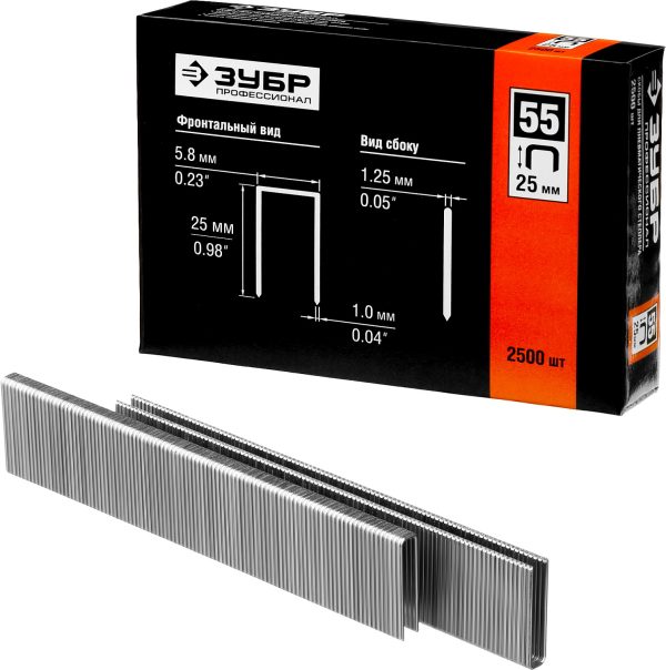 ЗУБР скобы тип 55 (90/C), 25 мм, калибр 18GA. 2500 шт. Профессионал (31855-25)