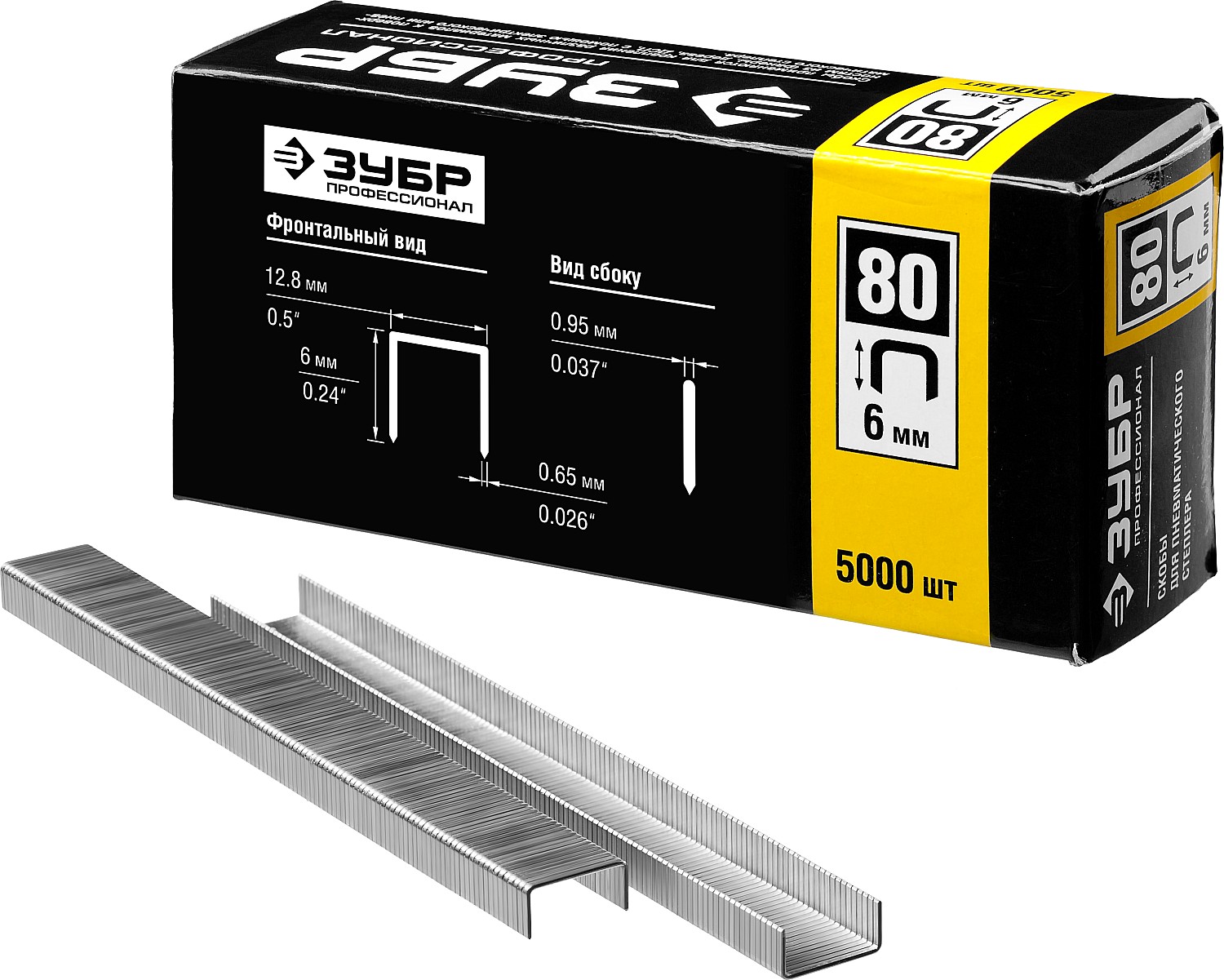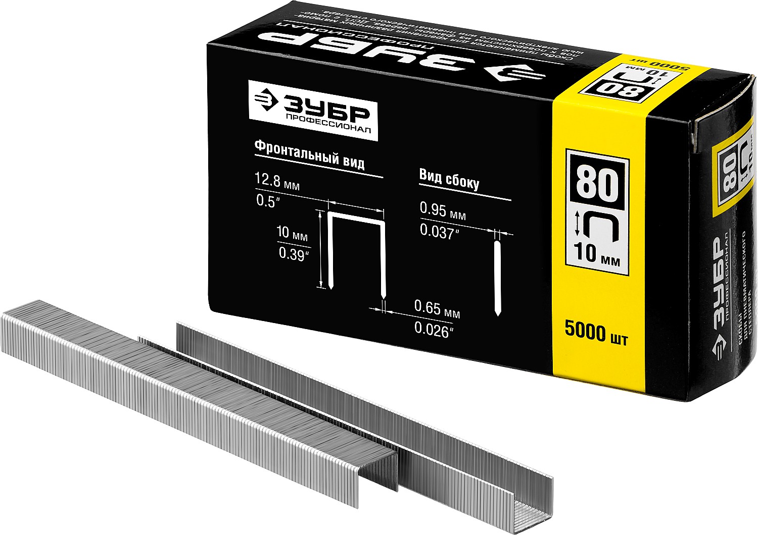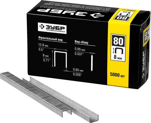 ЗУБР скобы тип 80 (BeA/Prebena A/Senco AT), 8 мм, калибр 21GA. 5000 шт. Профессионал (31880-08)