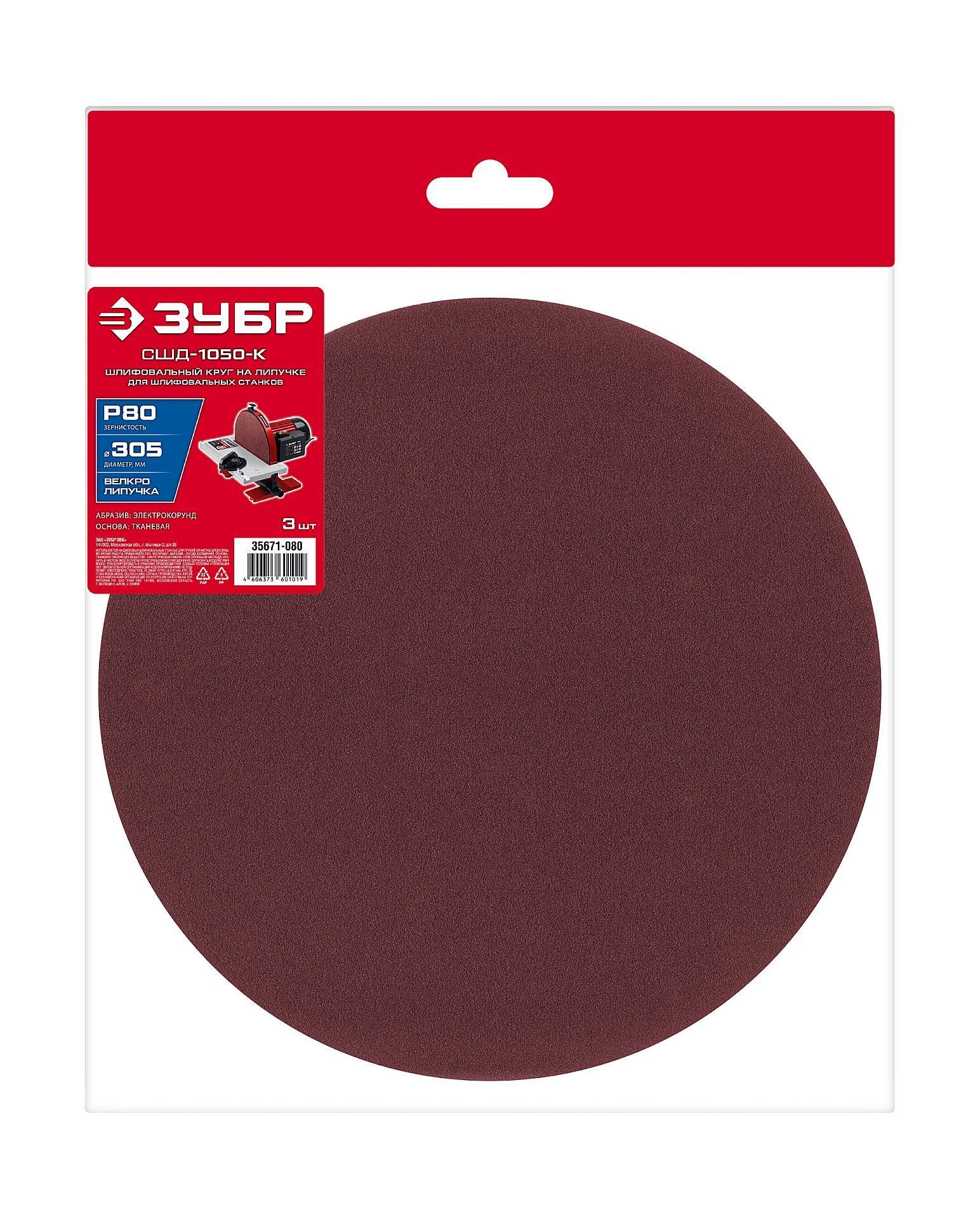 ЗУБР СШД-1050-К 305 мм, Р120, шлифовальный круг на липучке, 3 шт. (35671-120)
