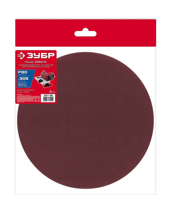 ЗУБР СШД-1050-К 305 мм, Р80, шлифовальный круг на липучке, 3 шт. (35671-080)