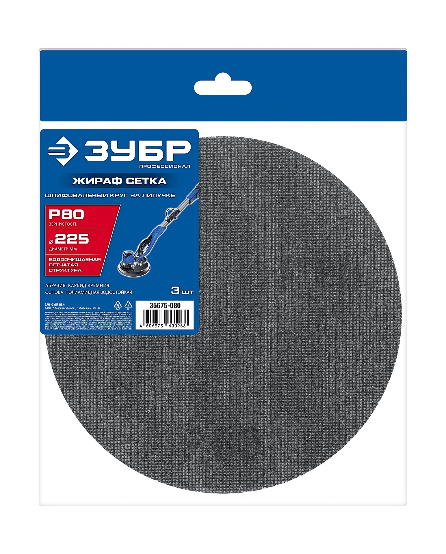ЗУБР Жираф СЕТКА 225 мм, Р120, сетчатый шлифовальный круг на липучке, 3 шт., Профессионал (35675-120)