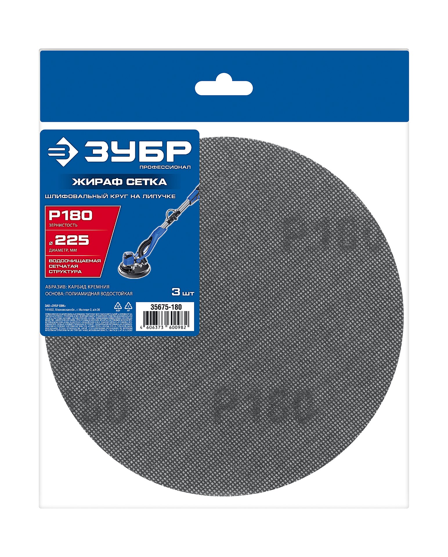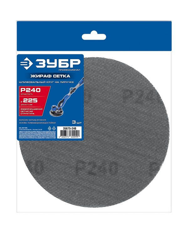 ЗУБР Жираф СЕТКА 225 мм, Р240, сетчатый шлифовальный круг на липучке, 3 шт., Профессионал (35675-240)